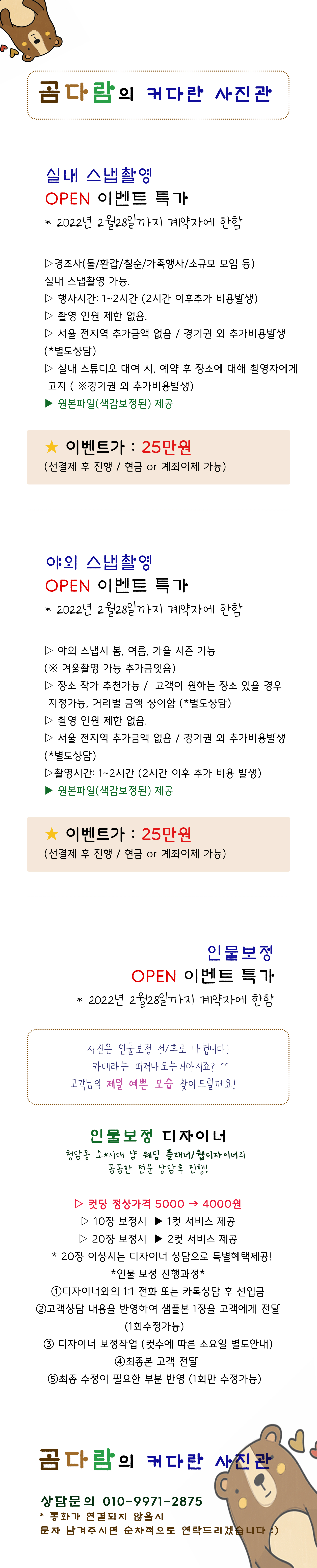 [곰다람의 커다란 사진관] 촬영 할인! 이벤트